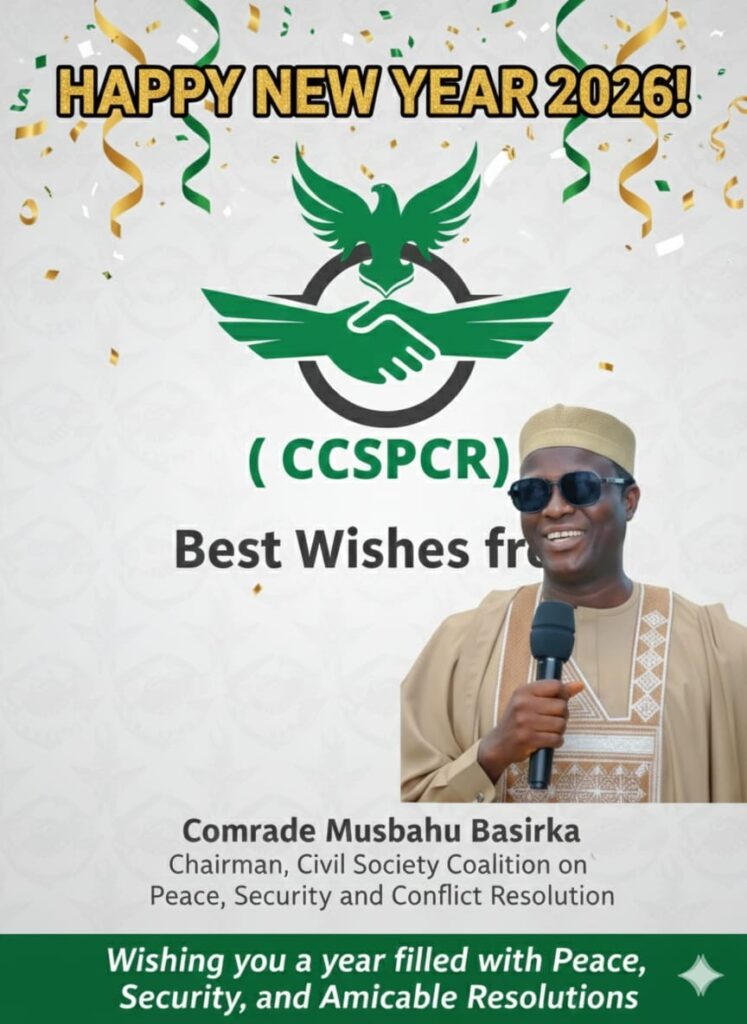 The Civil Society Coalition on Peace, Security, and Conflict Resolution (CCSPCR) has extended warm New Year 2026 greetings to the government and people of Jigawa State, urging continued unity, vigilance, and commitment to peacebuilding across communities.