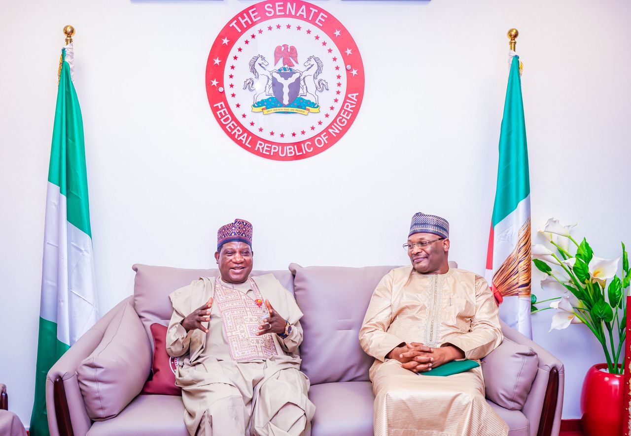 The Senate Committee Chairman on Electoral Matters Senator Simon Bako Lalong on Tuesday received the Chairman of the Independent National Electoral Commission Prof. Mahmood Yakubu in his office at the National Assembly Abuja.