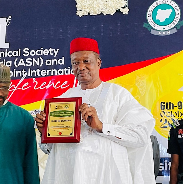 Kano State Deputy Governor, Comr. Aminu Abdussalam Gwarzo, has been honoured with an Award of Excellence at the 21st Annual Conference and 2nd Conjoint International Conference of the Anatomical Society of Nigeria (ASN), held at the Northwest University, Kano today.