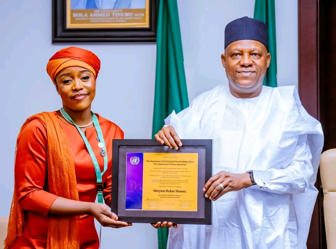 Vice President Kashim Shettima, speaking on Monday in Abuja when Maryam and her team paid him a courtesy visit at the Presidential Villa, described her appointment as “well-deserved” and commended her consistency in promoting peace. He cited her viral video, “Violence Has No Religion”, as a powerful example of her advocacy, saying he had watched it over a hundred times.