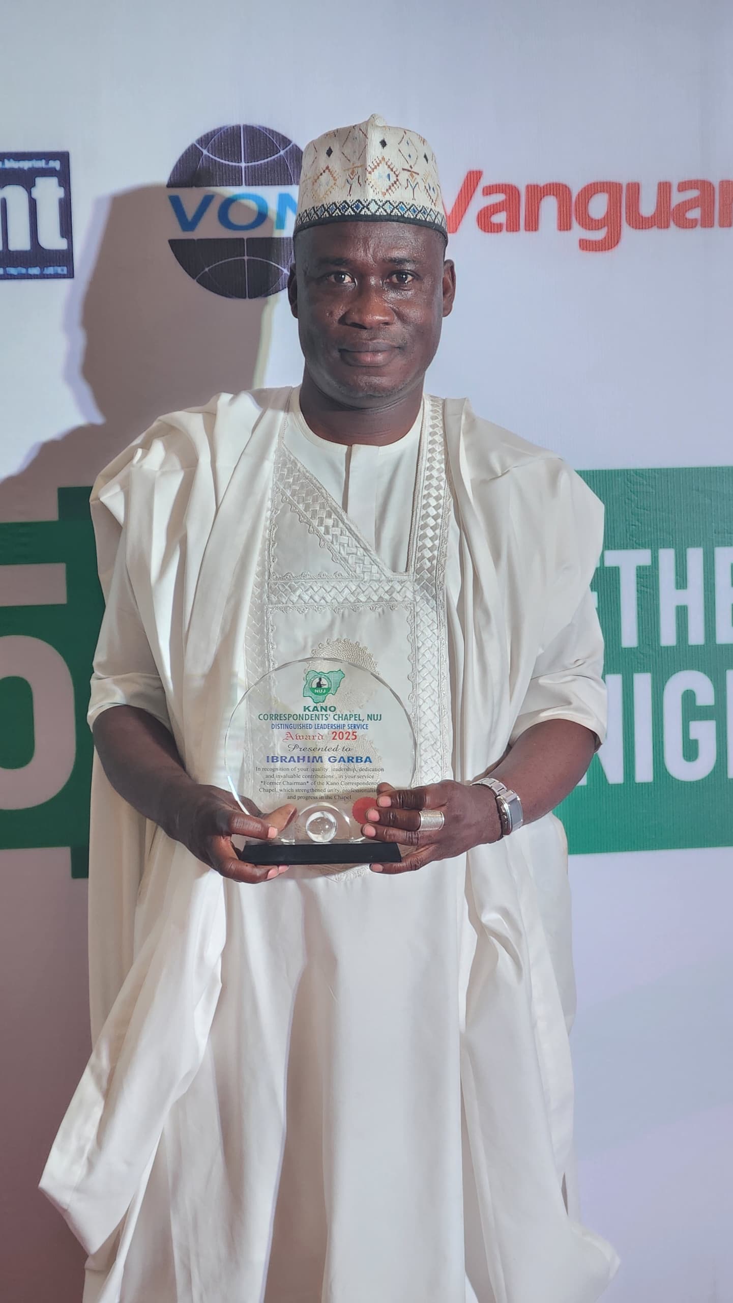 The honour was bestowed on him during the Kano Correspondents’ Chapel of the Nigeria Union of Journalists (NUJ) 2025 Get-Together and Award Night, an evening dedicated to fellowship, reflection, and the celebration of excellence in journalism.