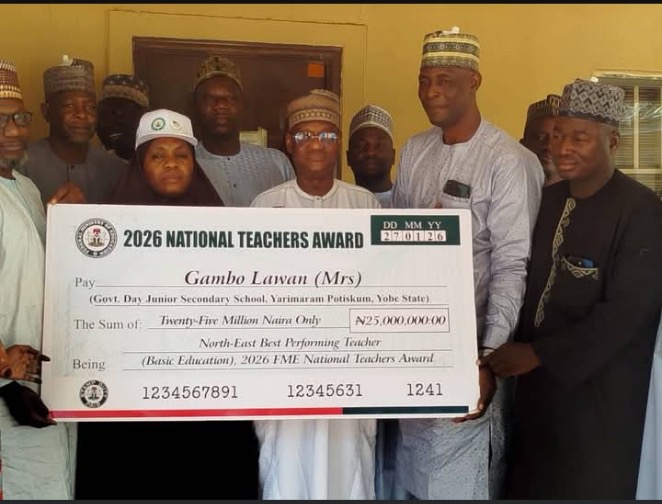 A Yobe State teacher, Gambo Lawan, has brought pride to the state after emerging as the Best Teacher in the North-East during the 2026 Federal Ministry of Education National Teachers Award Ceremony held at the Presidential Villa, Abuja.